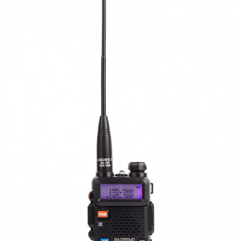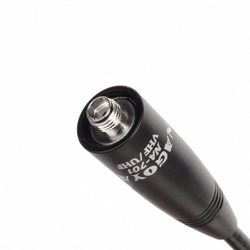 Nagoya NA-701, SMAJ (144/430) — гнучка антена, призначена для посилення сигналу. Завдяки підвищеному коефіцієнту підсилення здатно помітно покращити радіосигнал, щоб ви завжди залишалися на зв'язку. Працює у двох діапазонах UHF/VHF. Сумісна з портативними радіостанціями зі SMA Female роз'ємом.